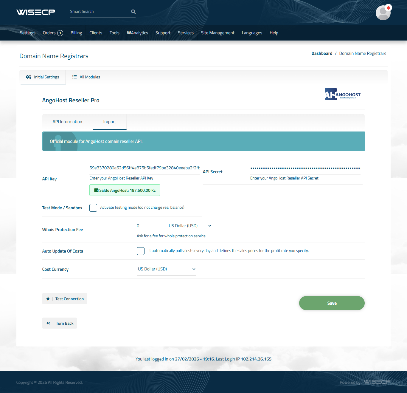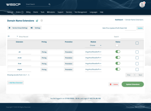 AngoHost Reseller ProOfficial Domain Registrar for WISECP