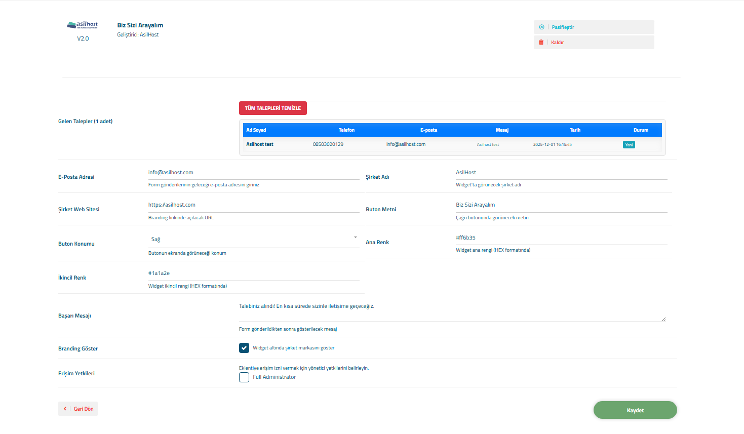 Wisecp Biz Sizi Arayalım Modülü